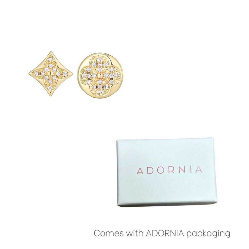 14k Gold Plated Mismatched CZ Clover Stud Earring Pair