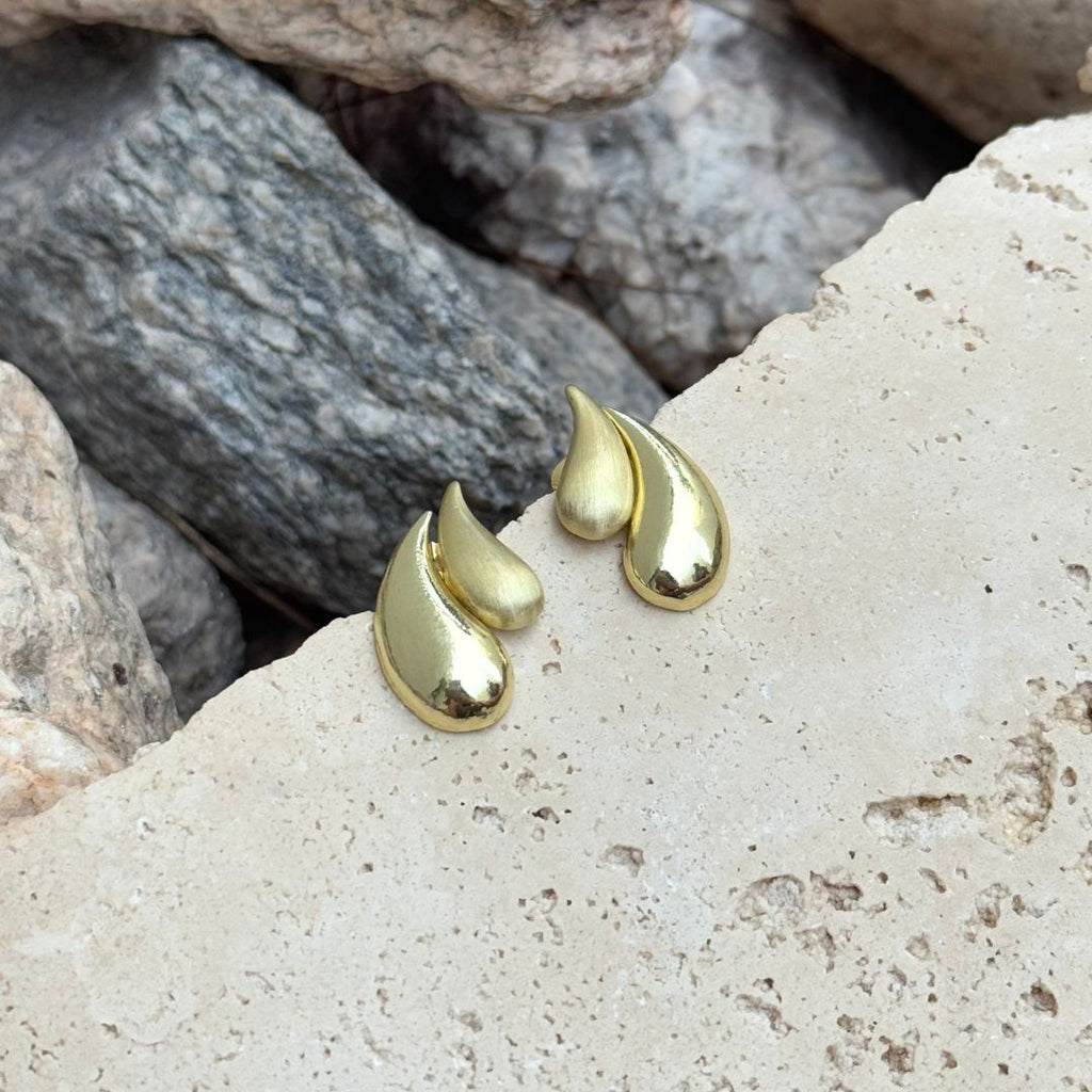 Gold Plated 2-Teardrop Studs – ADORNIA