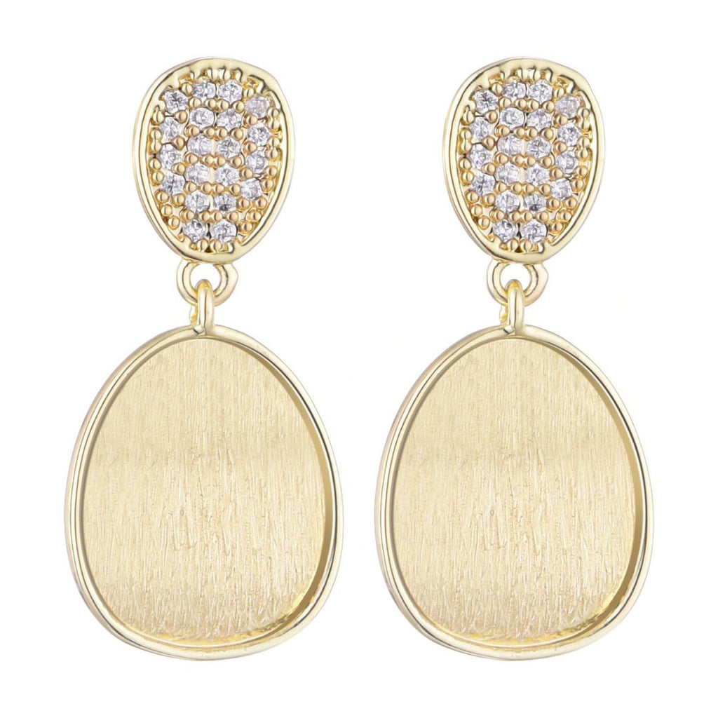 14k Gold Plated Satin Finish Crystal Drop Earrings