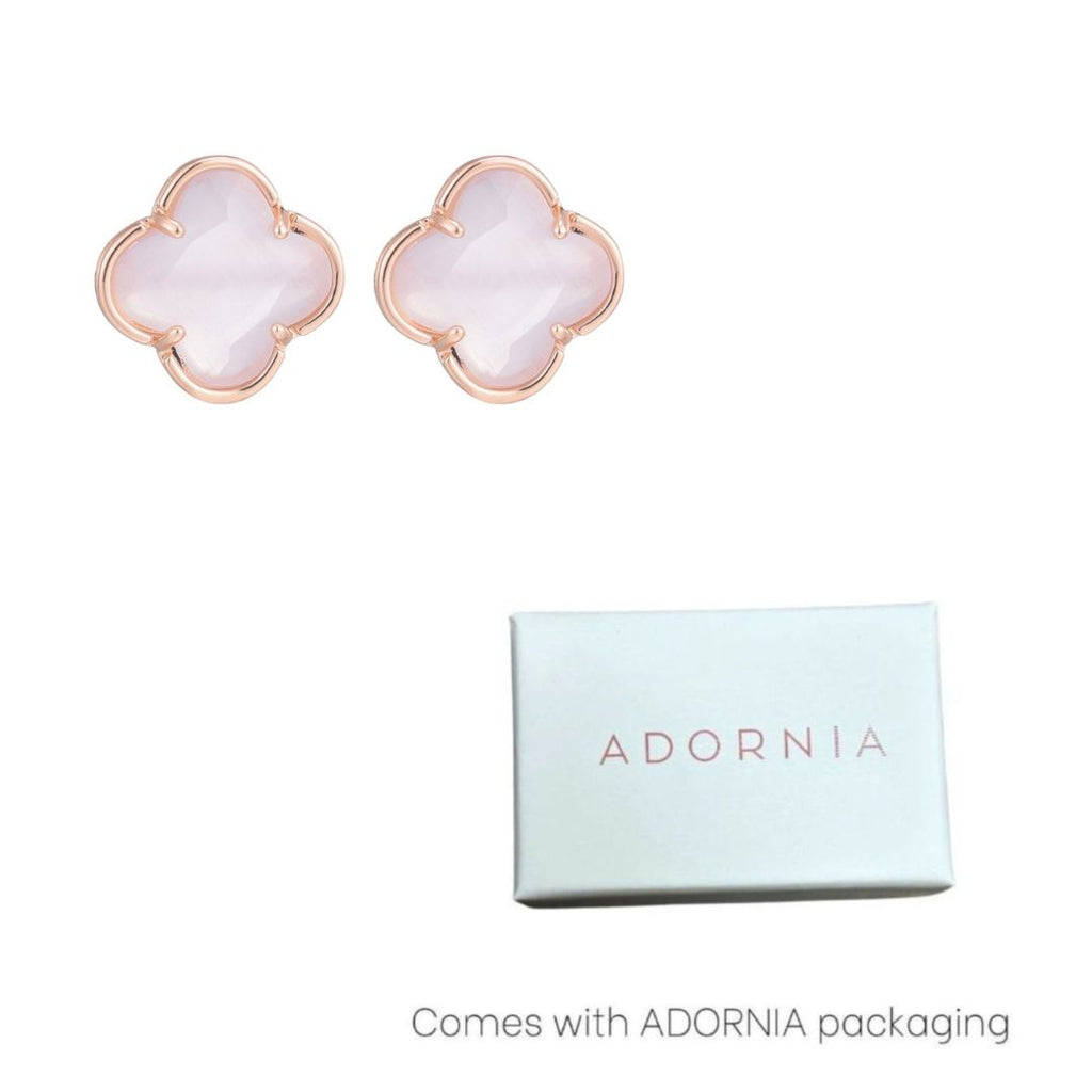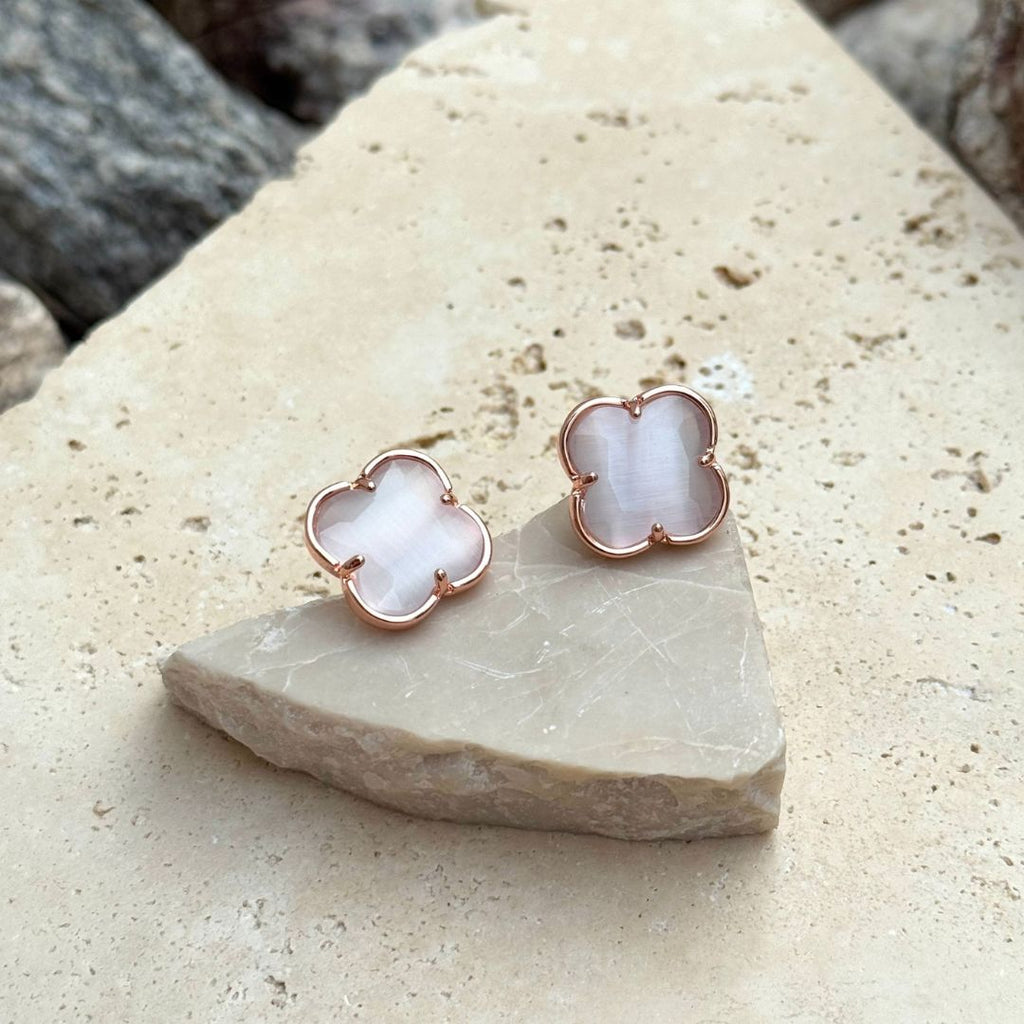 14k Rose Gold Plated Clover Stone Stud Earrings