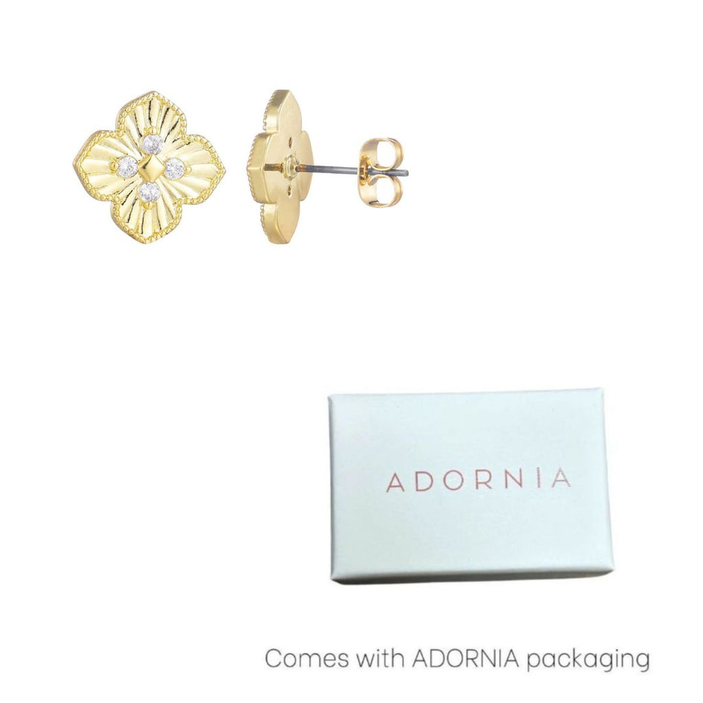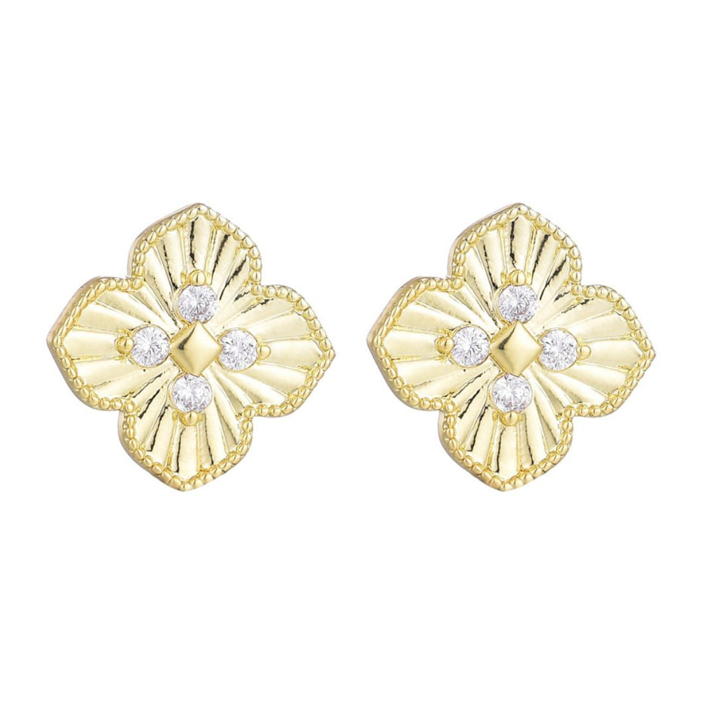 14k Gold Plate CZ Pointed Prismatic Clover Stud Earrings