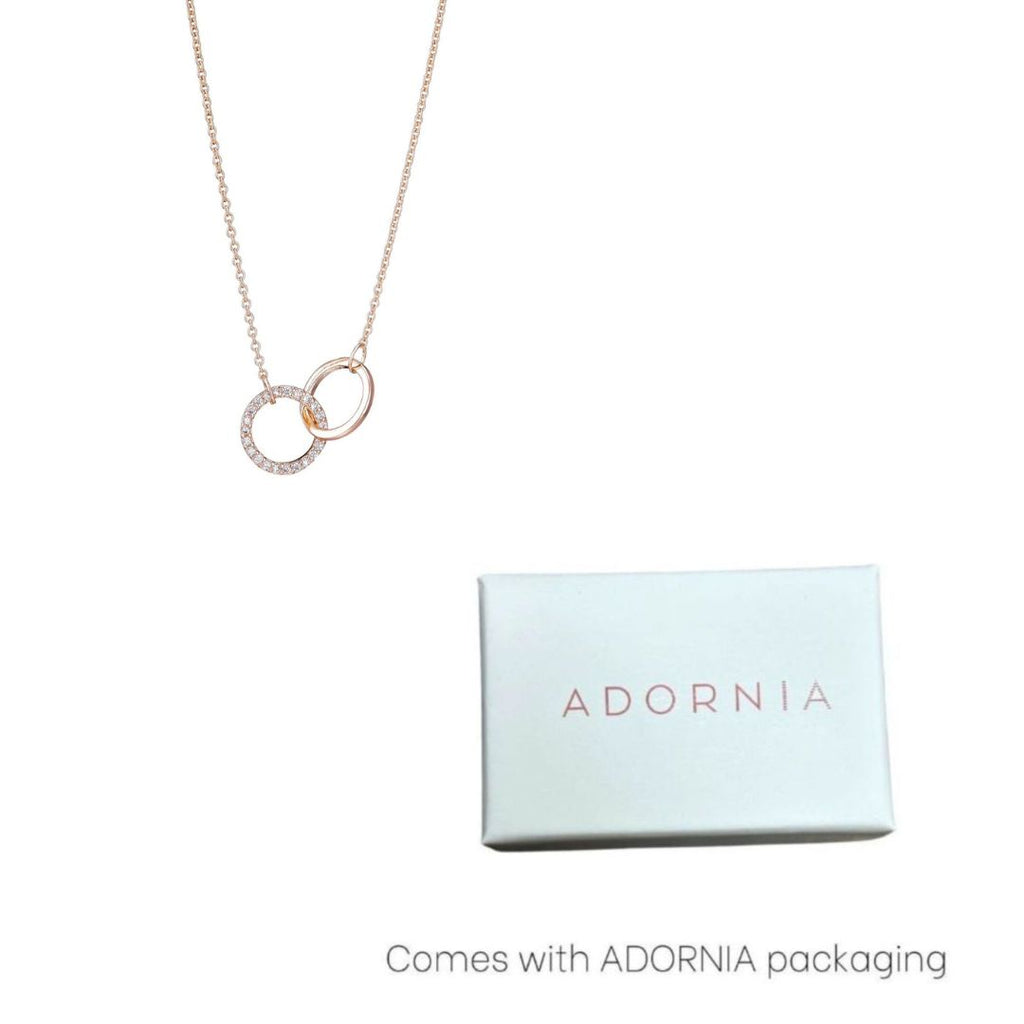 14k Rose Gold Plated Adjustable Pave CZ Rings Necklace