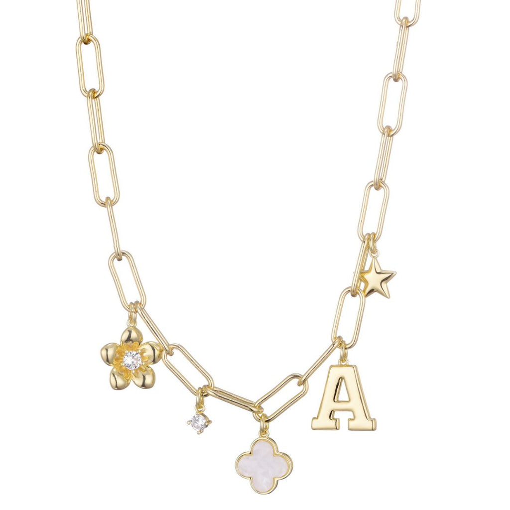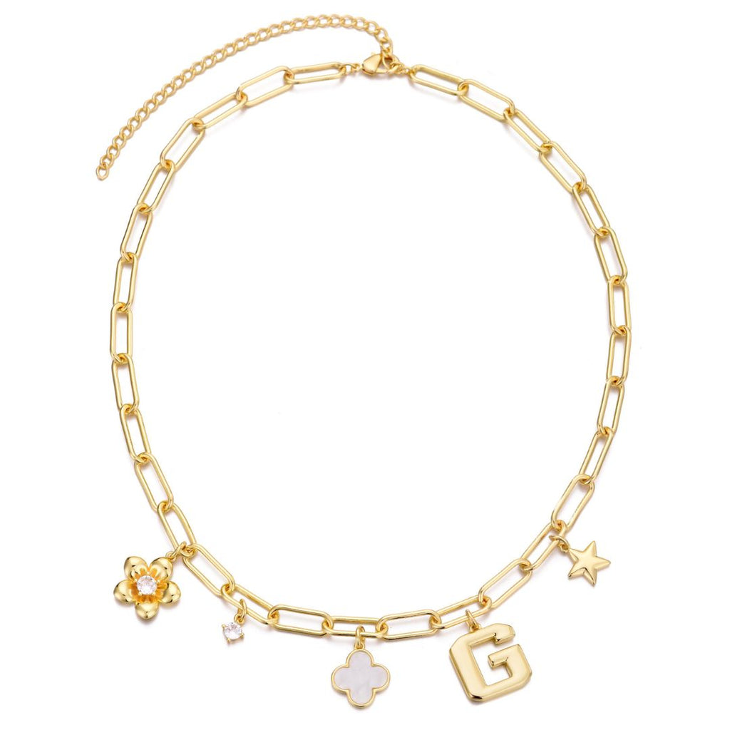14k Yellow Gold Plated Initial Chunky Charm Necklace