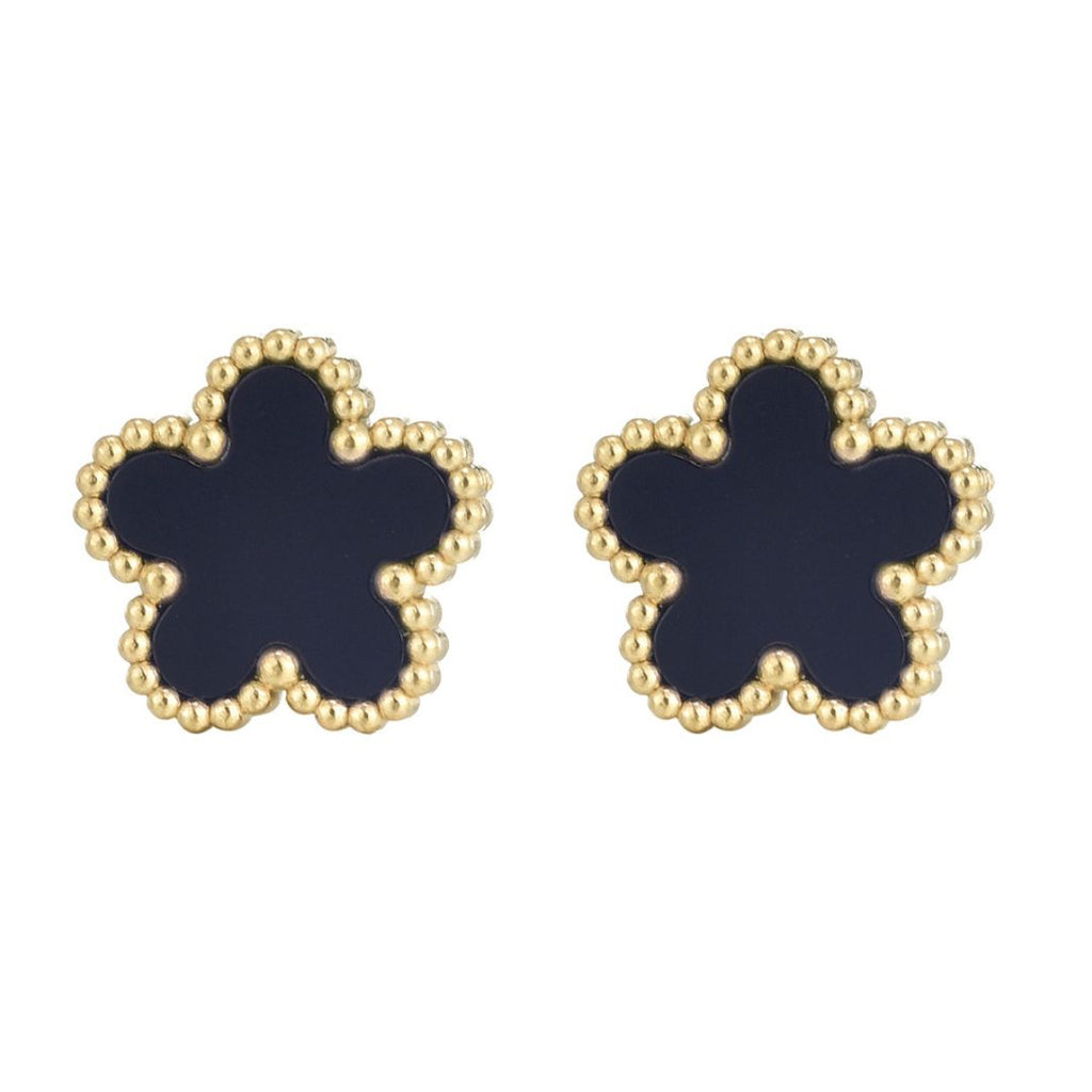 Tarnish Resistant 18k Gold Plated Black 5-Leaf Clover Stud Earrings