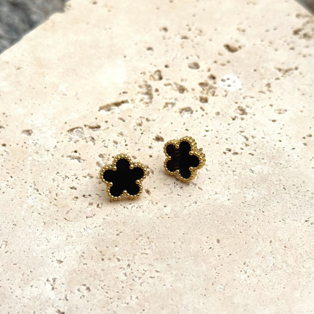 Tarnish Resistant 18k Gold Plated Black 5-Leaf Clover Stud Earrings – ADORNIA
