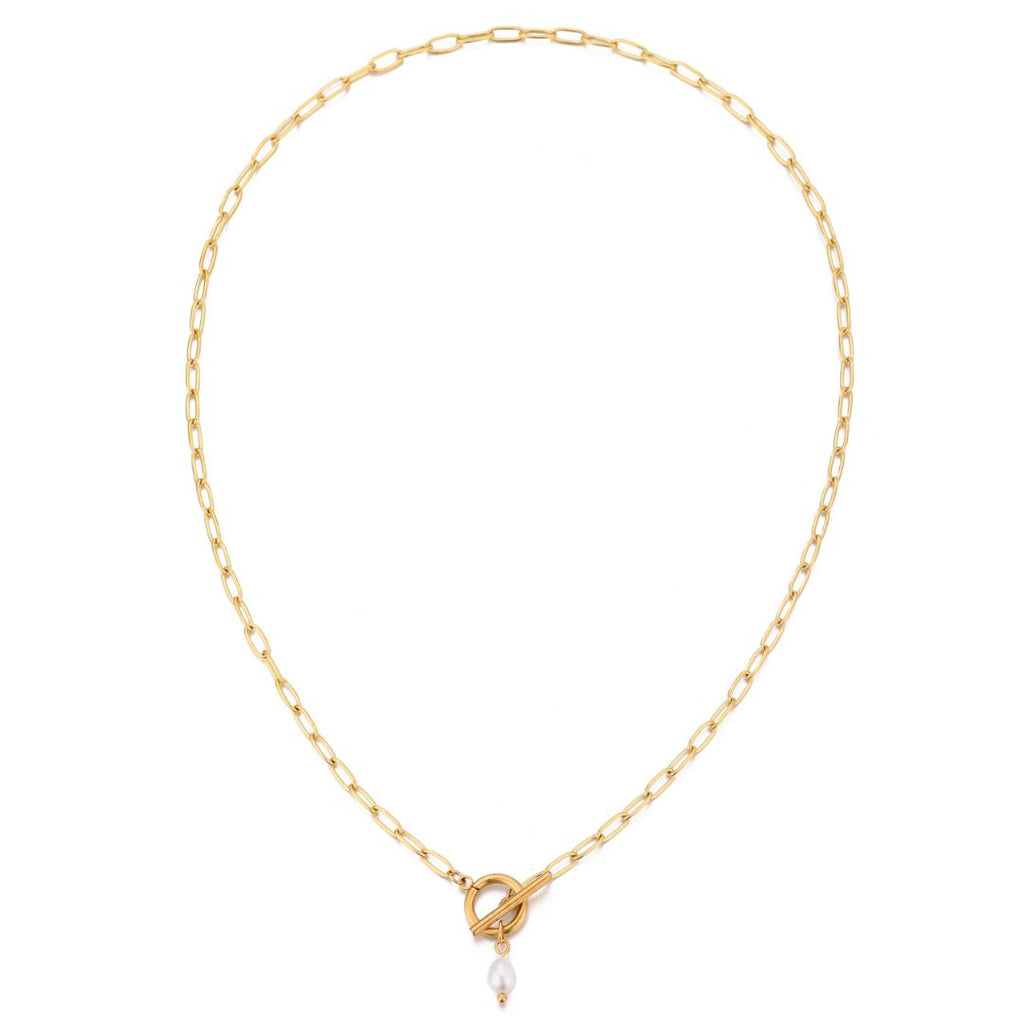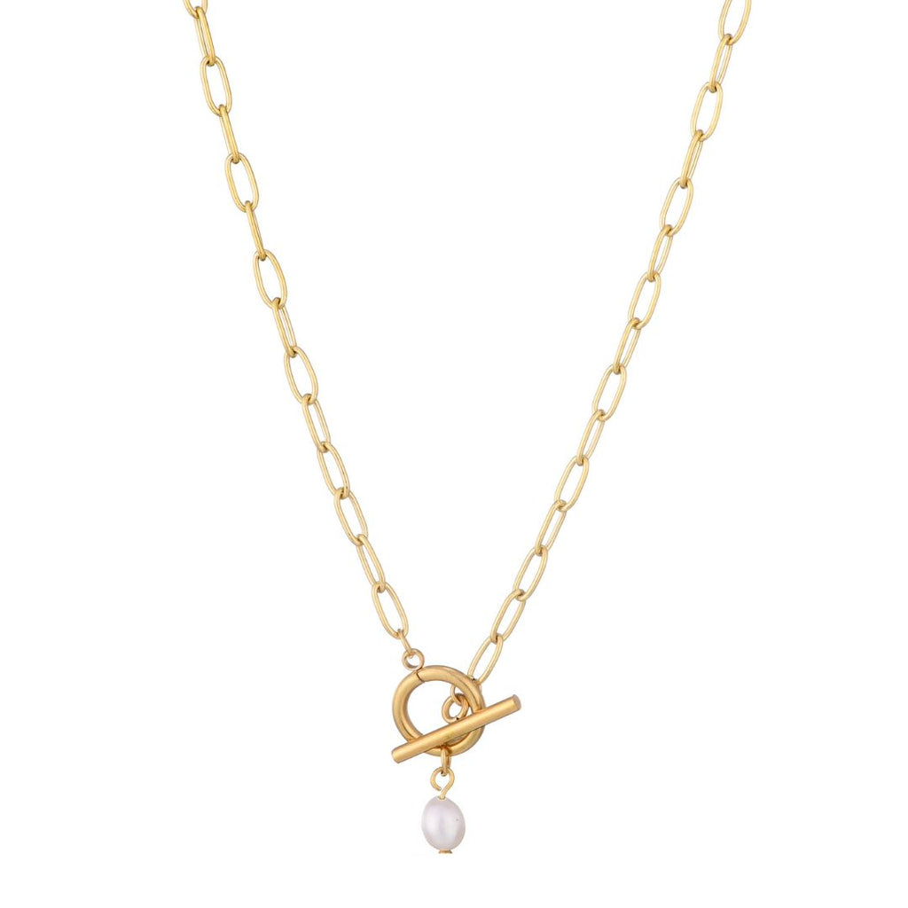 Tarnish Resistant 18k Gold Plated Freshwater Pearl Toggle Necklace