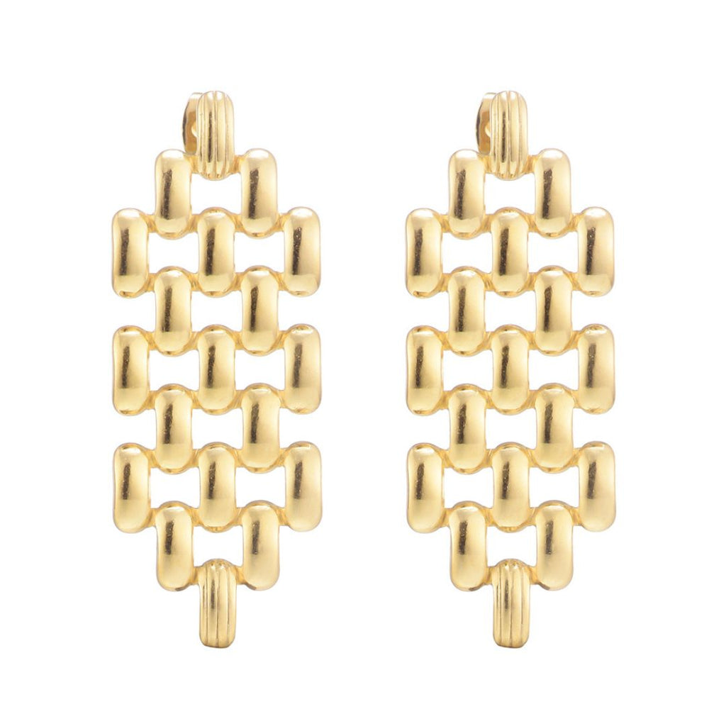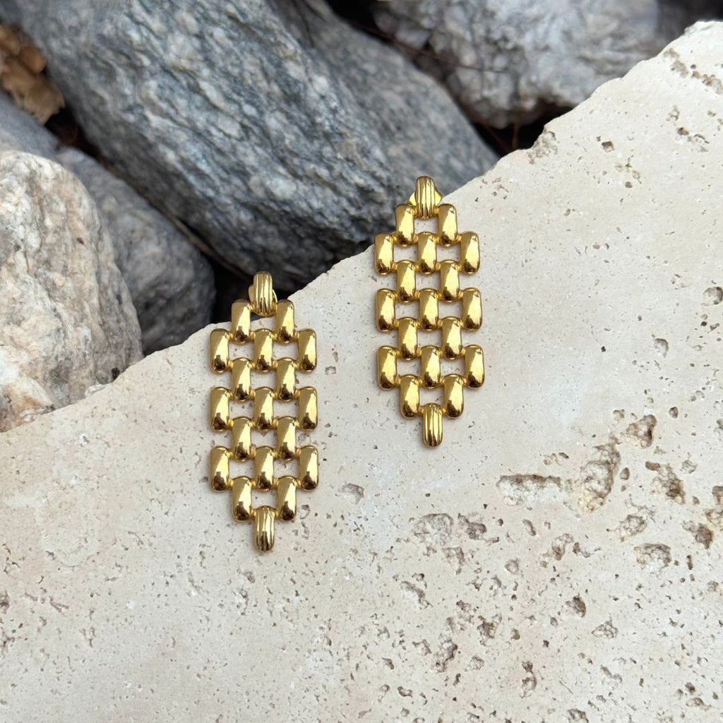 Tarnish Resistant 18k Gold Plated Grid Drop Earrings