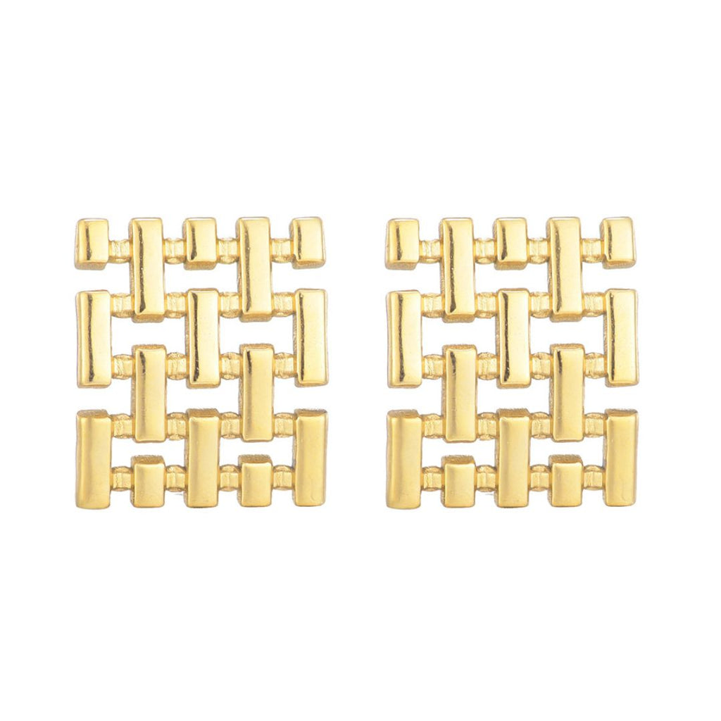 Tarnish Resistant 18k Gold Plated Grid Studs