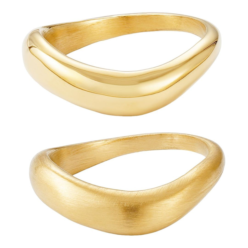 Tarnish Resistant 18k Gold Plated Nesting Curved Band Set – ADORNIA
