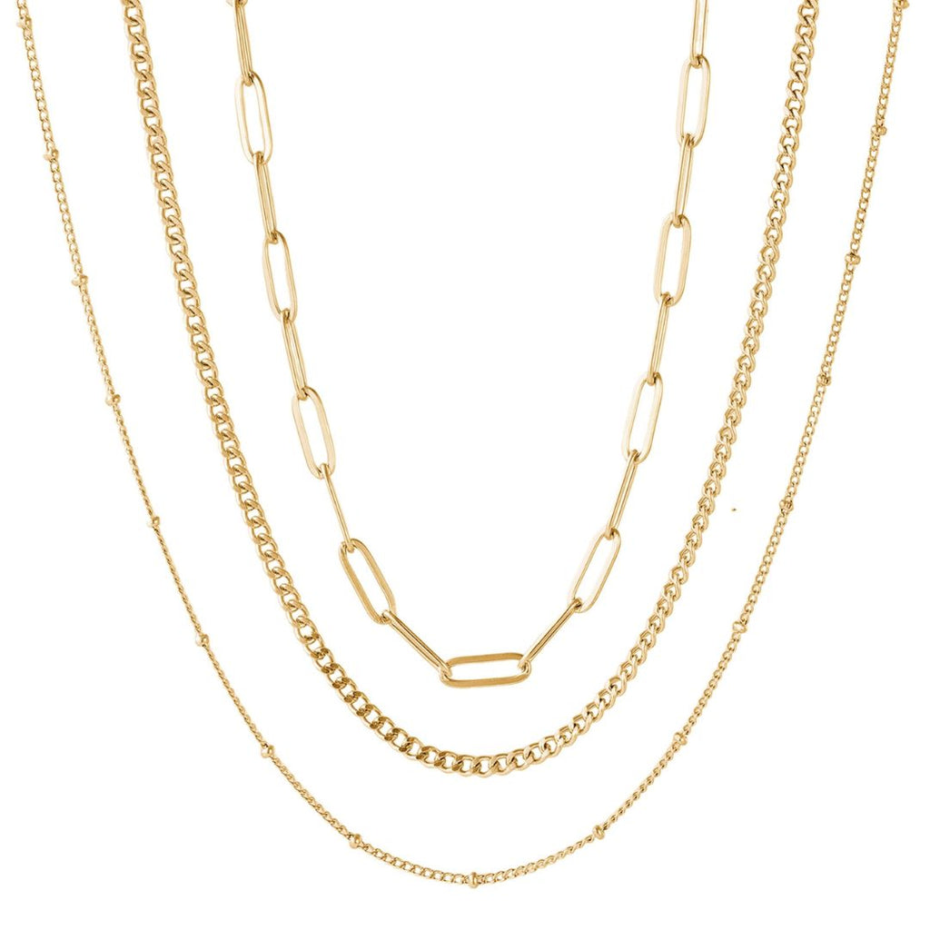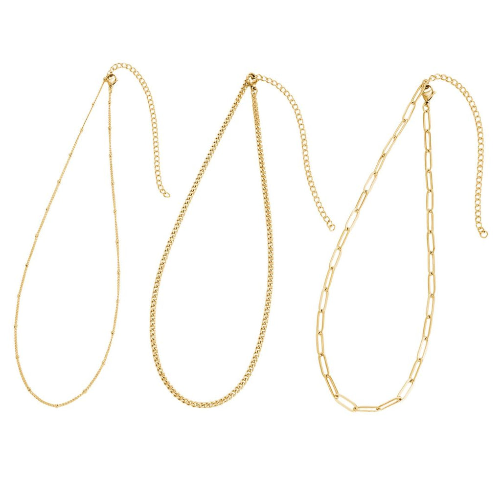 Tarnish Resistant 18k Gold Plated Set of 3-Chain Necklaces