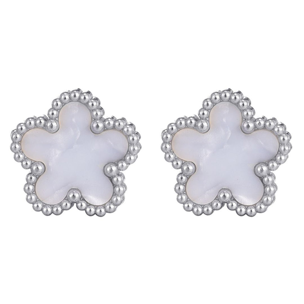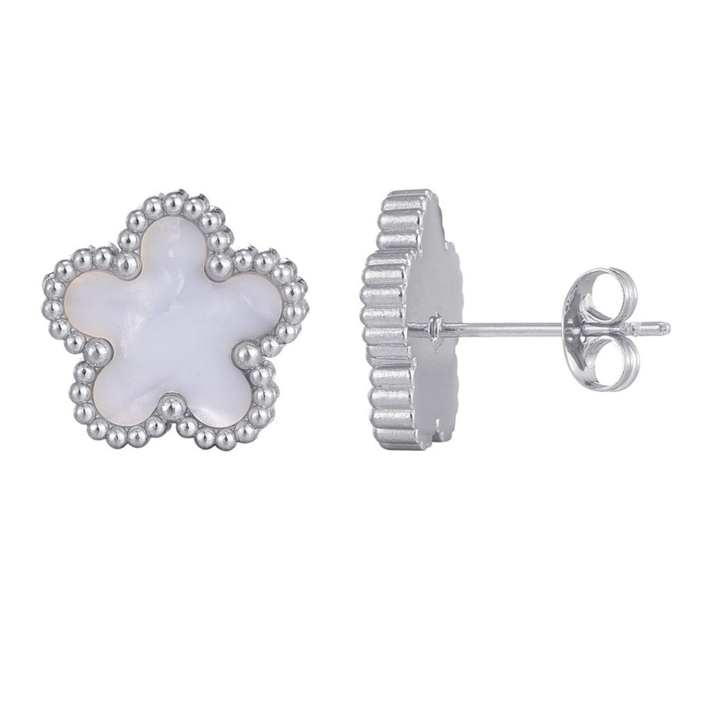 Tarnish Resistant Silver Plated Mother of Pearl 5-Leaf Clover Stud Earrings