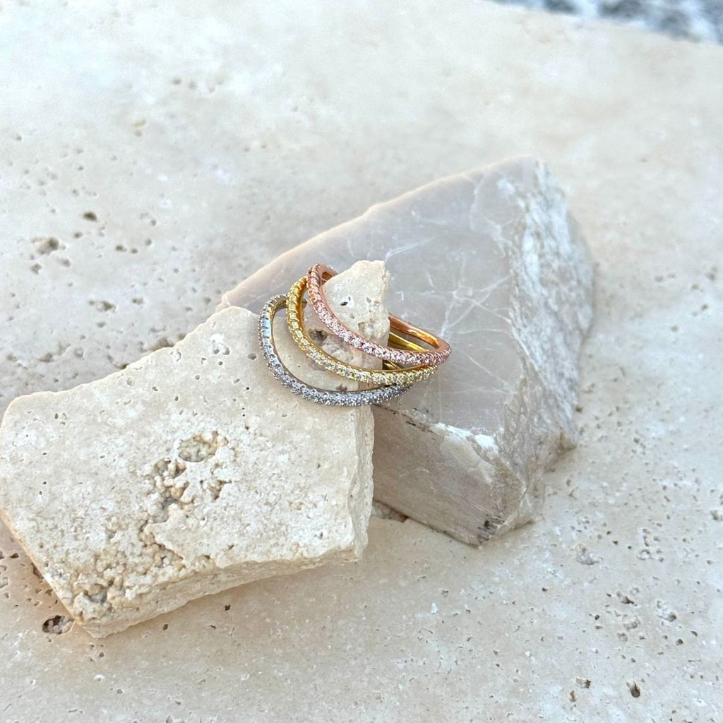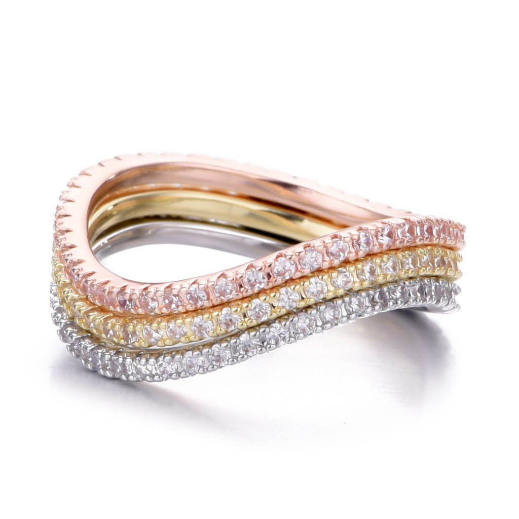 Tri-Color CZ Curved Eternity Band Nesting Set