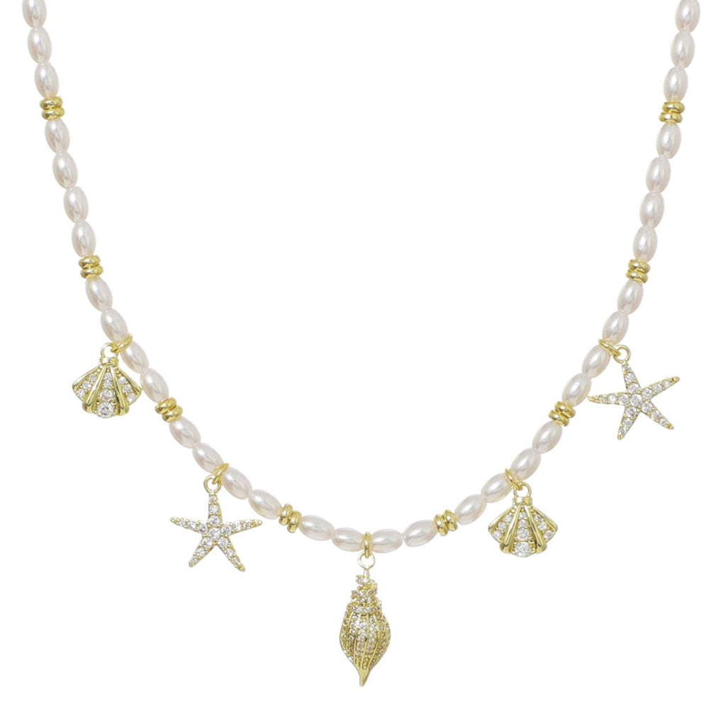14k Gold Plated Adjustable 2mm Pearl Charm Necklace